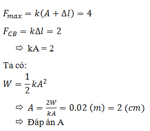 Một con lắc lò dao động điều hòa theo phương thẳng đứng có cơ năng 20 mJ, lực đàn hồi cực đại của lò xo 4 N, lực đàn hồi của lò xo khi vật ở vị trí cân bằng là 2 N. Biên độ dao động của vật là