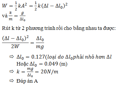 Một con lắc lò xo treo thẳng đứng với khối lượng của vật là 100 g. Kéo vật theo phương thẳng đứng xuống dưới đến vị trí lò xo giãn 7,9 cm rồi buông nhẹ để nó dao động điều hòa xung quanh vi trí cân bằng với cơ năng 9 mJ. Lấy g = 9,8 m/