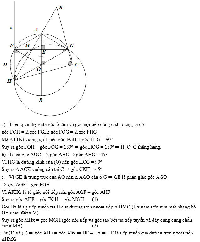 c) Gọi M là giao của AH và FG. Chứng minh FH là tiếp tuyến của đường tròn ngoại tiếp ∆ HMG.