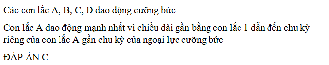 Hỏi bạn Minh quan sát thấy con lắc nào dao động mạnh nhất