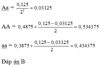Trong một quần thể ngô, xét một gen có 2 alen A, a nằm trên NST thường. Sau 2 thế hệ tự thụ phấn bắt buộc, cấu trúc di truyền của quần thể như sau: 0,4875AA : 0,125Aa : 0,3875aa. Nếu tiếp tục cho tự thụ phấn bắt buộc thì ở thế hệ thứ 4 cấu trúc di truyền của quần thể là: