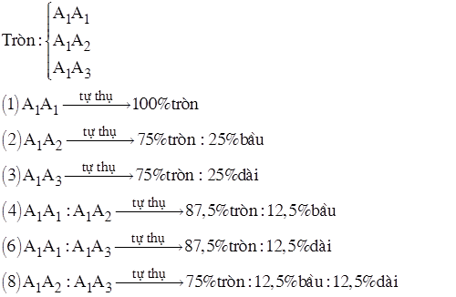 (8) 75% cây quả tròn : 12,5% cây quả bầu : 12,5% cây quả dài.