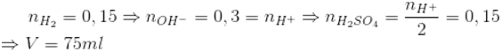 Cho một mẫu hợp kim Na - Ba tác dụng với nước (dư), thu được dung dịch X và 3,36 lít H2 (ở đktc). Thể tích dung dịch axit H2SO4 2M cần dùng để trung hoà dung dịch X là