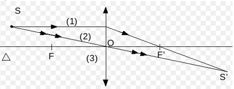Hình vẽ cho biết ∆ là trục chính của một thấu kính, S là điểm sáng, S’ là ảnh của S tạo