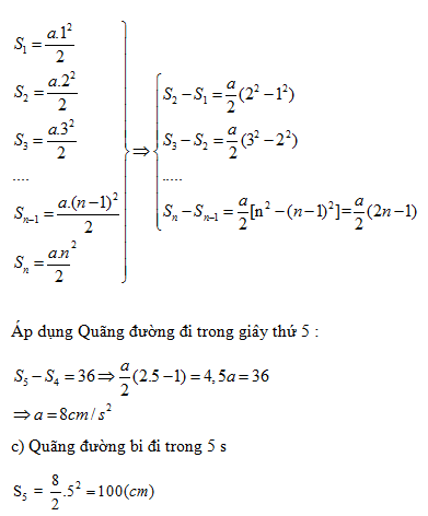 a)Xây dựng công thức tính quãng đường S theo gia tốc a của viên bi chuyển động trong giây thứ n