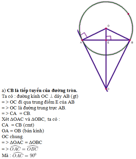a) Chứng minh rằng CB là tiếp tuyến của đường tròn.