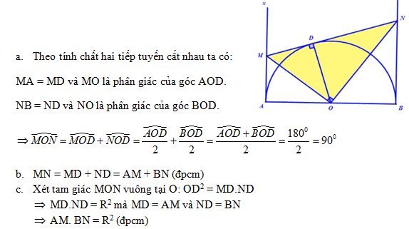 a. Tính số đo góc \(MON.\) b. CMR: \(MN = AM + BN.\) c. Chứng minh