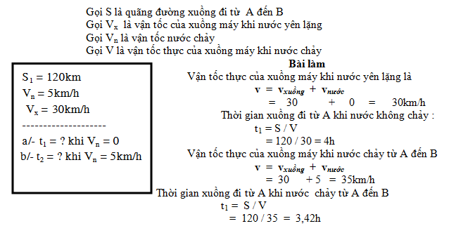 Một chiếc xuồng máy chạy từ bến sông A đến bến sông B cách A 120km. Vận tốc của xuồng khi nước yên lặng là 30km/h. Sau bao lâu xuồng đến B. Nếu :