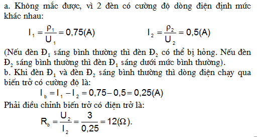 a) Có thể mắc nối tiếp 2 đèn này vào hiệu điện thế U = 9V để chúng sáng bình thường được không? Vì sao?