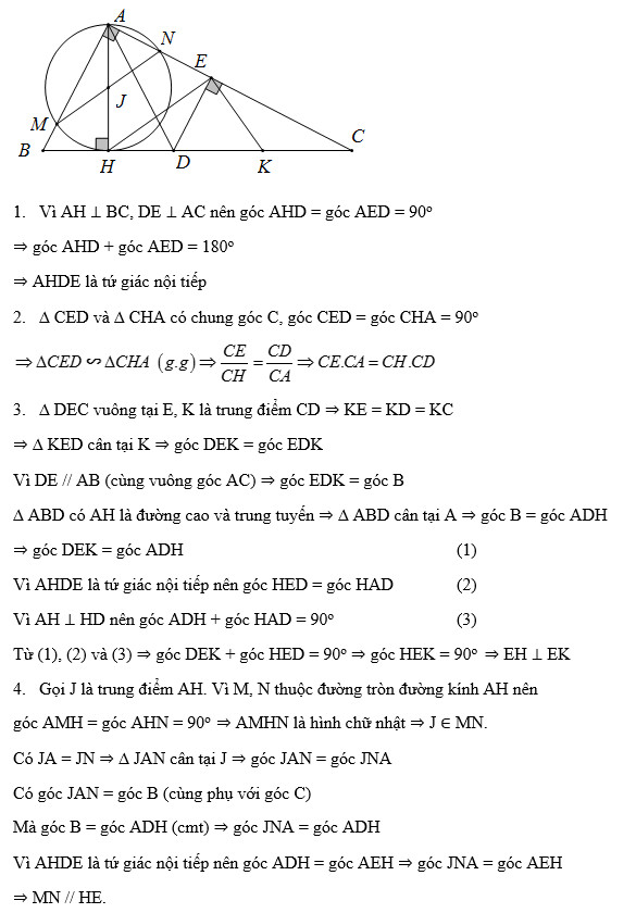4. Vẽ đường tròn đường kính AH cắt AB, AC lần lượt tại M và N.