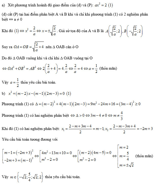 a) Cho parabol (P): y = ax2. Tìm hệ số a để đường thẳng (d): y = 2 cắt (P) tại hai điểm