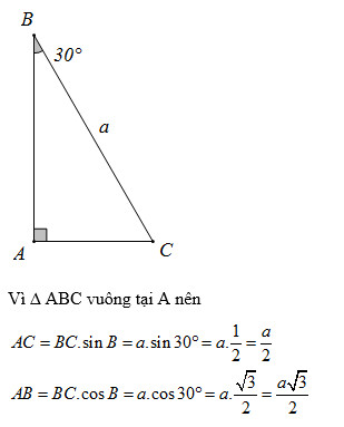 Cho tam giác ABC vuông tại A có góc ABC = 30o và BC = a. Tính theo a độ dài AB và AC.
