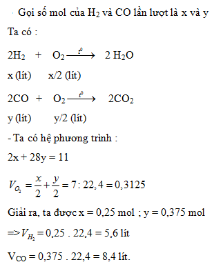 Đốt cháy hoàn toàn 11 lít hỗn hợp khí hidro và cacbon oxit cần dùng hết 7 lít khí oxi.