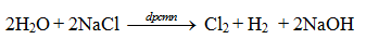 Điện phân dung dịch natri clorua (NaCl) bão hoà trong bình điện phân có màng ngăn ta thu được hỗn
