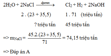 Hàng năm thế giới cần tiêu thụ khoảng 45 triệu tấn clo. Nếu dùng muối ăn để điều chế clo thì cần bao nhiêu tấn muối (trong các số cho dưới đây)?