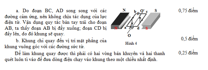Quan sát hình vẽ (hình 4). Cho biết. a. Khung dây sẽ quay như thế nào? Tại