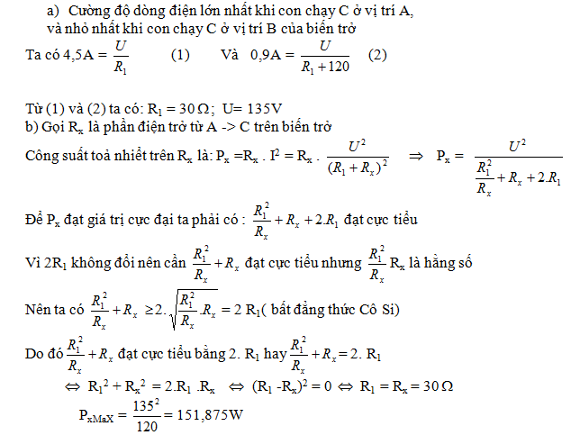 Một biến trở có giá trị điện trở toàn phần R =120. Nối tiếp với một điệ trở R1.