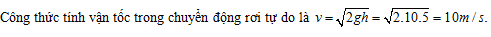 Một vật rơi tự do ở độ cao 5m xuống đất, cho g = 10 m/s2 .Vận tốc mà vật đạt được khi