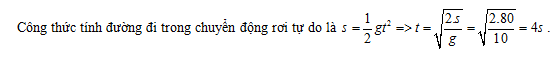 Một giọt nước rơi tự do từ độ cao 80 m xuống đất, cho g = 10m/s2. Thời gian giọt nước rơi