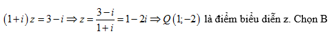 Cho số phức z thỏa mãn (1 + i)z = 3 – i. Hỏi điểm biểu diễn của z là điểm nào trong các