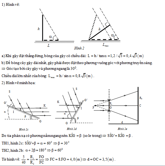 1) Một người cầm cây gậy mảnh, thẳng có chiều dài h = 1,2 m. Bóng của cây gậy in trên mặt sân có chiều dài L. Tính L khi cây gậy ở vị trí sao cho: