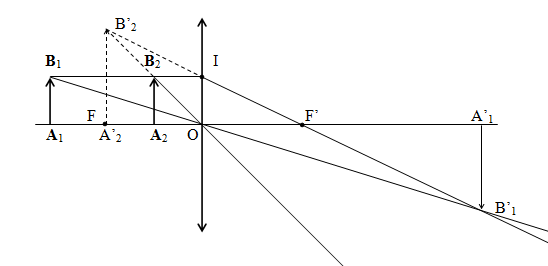 b)Thấu kính L được cắt ngang qua quang tâm thành hai nửa tkính L1 & L2 . Phần bị cắt của L2 được thay bằng một gương phẳng (M) có mặt phản xạ quay về L1. Khoảng cách O1O2 = 2f. Vẽ ảnh của vật sáng AB qua hệ quang và số lượng ảnh của AB qua hệ ? ( Câu a và b độc lập nhau )