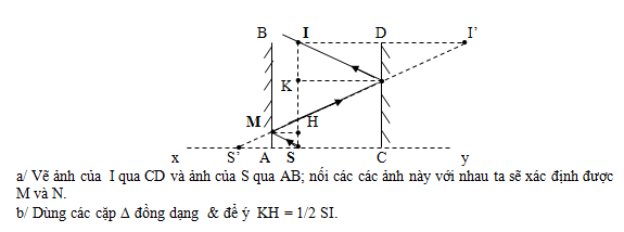 ở M, phản xạ trên CD tại N và đi qua I ?