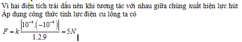 Hai điện tích điểm trái dấu có cùng độ lớn 10-4/3 C đặt cách nhau 1 m trong parafin có điện môi bằng 2 thì chúng