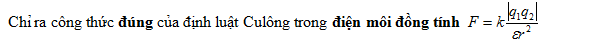 Chỉ ra công thức đúng của định luật Culông trong điện môi đồng