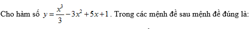 Hàm số có hệ số của x3 dương nên x < xCT, suy ra x = 1 là điểm cực đại, x = 5 là điểm cực tiểu