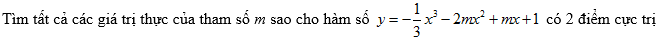 Hàm số có 2 điểm cực trị ⇔ Phương trình y’ = – x2 – 4mx + m = 0 có 2 nghiệm phân biệt
