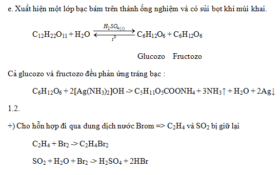 e. Đun nóng dung dịch hỗn hợp gồm saccarozo và H2SO4 loãng khoảng 2-3 phút. Sau đó trung hòa bằng dung dịch NaOH. Cho dung dịch thu được vào ống nghiệm chứa AgNO3/NH3