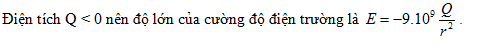 Công thức xác định cường độ điện trường gây ra bởi điện tích Q < 0, tại một điểm