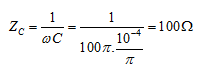Đặt điện áp u =U0cos100πt (t tính bằng s) vào hai đầu một tụ điện có điện dung (F). Dung kháng của tụ điện là