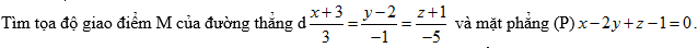 M(–3 + 3t; 2 – t; –1 – 5t) ∈ d. M ∈ (P) ⇔ – 3 + 3t – 2(2 – t) – 1 – 5t – 1 = 0 ⇔ 0t = 9
