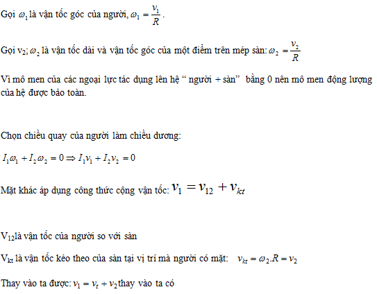 Một người có khối lượng m đứng ở mép một sàn quay có dạng là một đĩa tròn khối lượng