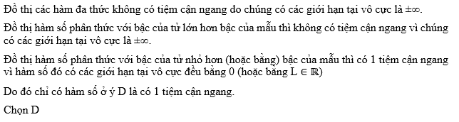 Đồ thị hàm số nào có đường tiệm cận ngang?