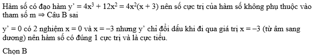 Cho hàm số y = x4 + 4x3 – m. Khẳng định nào sau đây là khẳng định sai: