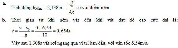 b. Sau bao lâu vật rơi ngang qua vị trí ban đầu? Tính vận tốc lúc rơi ngang qua vị trí ném?