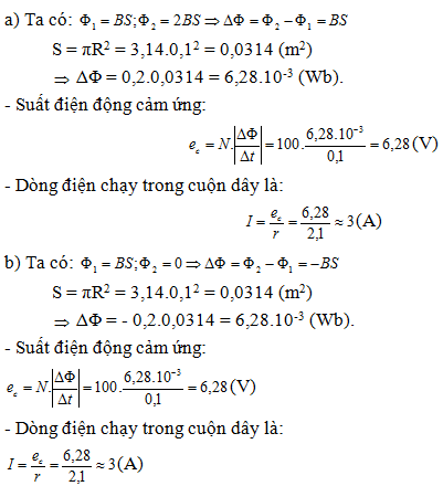 Một cuộn dây phẳng có 100 vòng, bán kính mỗi vòng dây là 0,1m. Cuộn dây được đặt trong từ