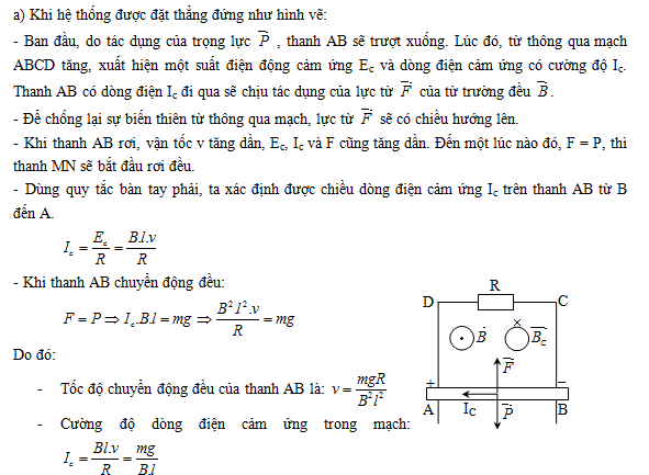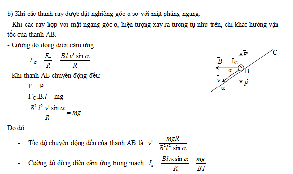 b) Khi các ray hợp với mặt ngang góc α, AB sẽ trượt với vận tốc bao nhiêu? IC là bao nhiêu?