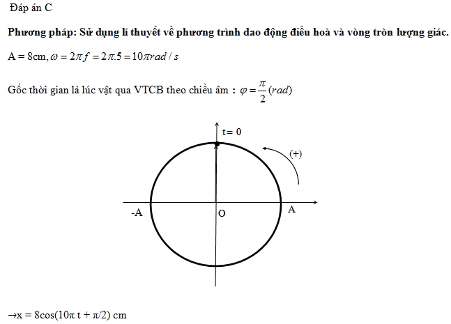 Một vật dao động điều hòa với tần số 5 Hz và biên độ 8 cm. Chọn gốc thời gian lúc vật qua vị trí cân bằng theo chiều âm. Phương trình dao động của là: