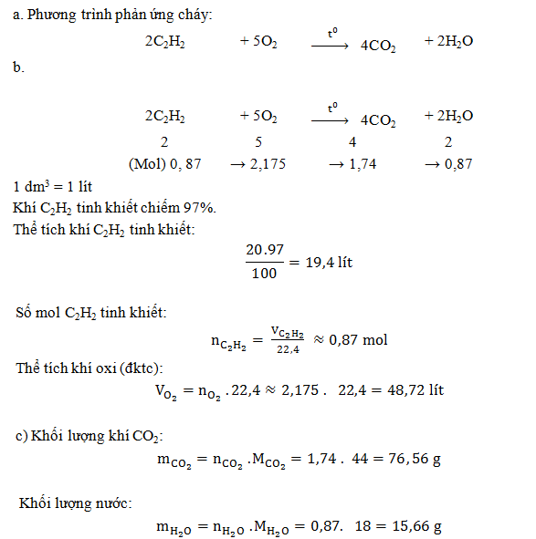 Đốt cháy hoàn toàn 20 dm3 khí axetilen (C2H2) có chứa 3% tạp chất không cháy. a. Viết phương