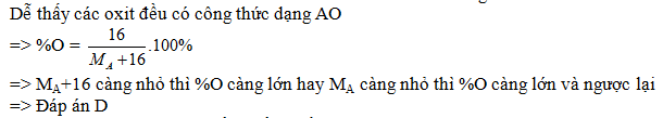Phần trăm về khối lượng của oxi cao nhất trong oxit nào cho dưới đây?