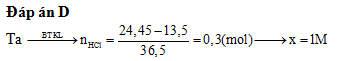 Cho 13,5 gam hỗn hợp gồm 3 amin no, đơn chức, mạch hở tác dụng vừa đủ với 300 ml dung dịch HCl xM, thu được dung dịch chứa 24,45 gam hỗn hợp muối. Giá trị của x là