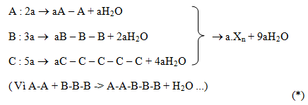 Hỗn hợp X gồm 3 peptit A,B,C đều mạch hở có tổng khối lượng là m và có tỷ lệ số mol là nA : nB : nC = 2 : 3 : 5. Thủy phân hoàn toàn X thu được 60 gam Glyxin ; 80,1gam Alanin và 117 gam Valin.Biết số liên kết peptit trong C,B,A theo thứ tự tạo nên 1 cấp số cộng có tổng là 6. Giá trị của m là :