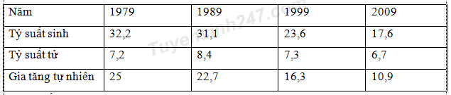 Tỷ suất sinh và tỷ suất tử Việt Nam giai đoạn 1979 – 2009
