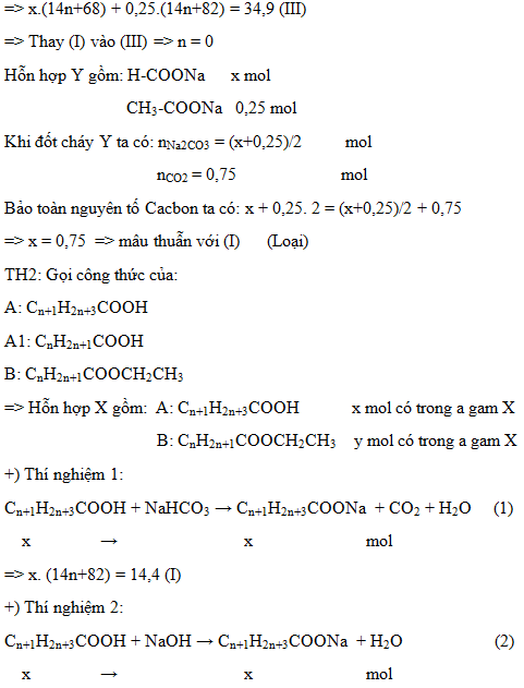 Thí nghiệm 1: Cho a gam hỗn hợp X tác dụng với dung dịch NaHCO3 (vừa đủ) thu được 14,4 gam muối.