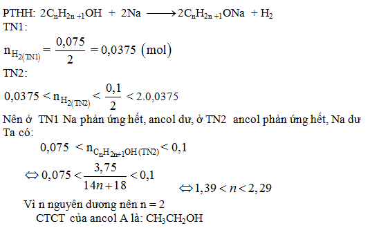 (2,25 điểm) 1. Thực hiện hai thí nghiệm về ancol A (CnH2n +1OH). Thí nghiệm 1: Cho 3,75 gam A tác