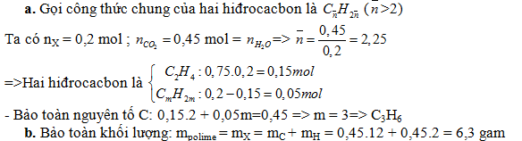 b. Trùng hợp hoàn toàn 4,48 lit hỗn hợp X trên thu được bao nhiêu gam polime?